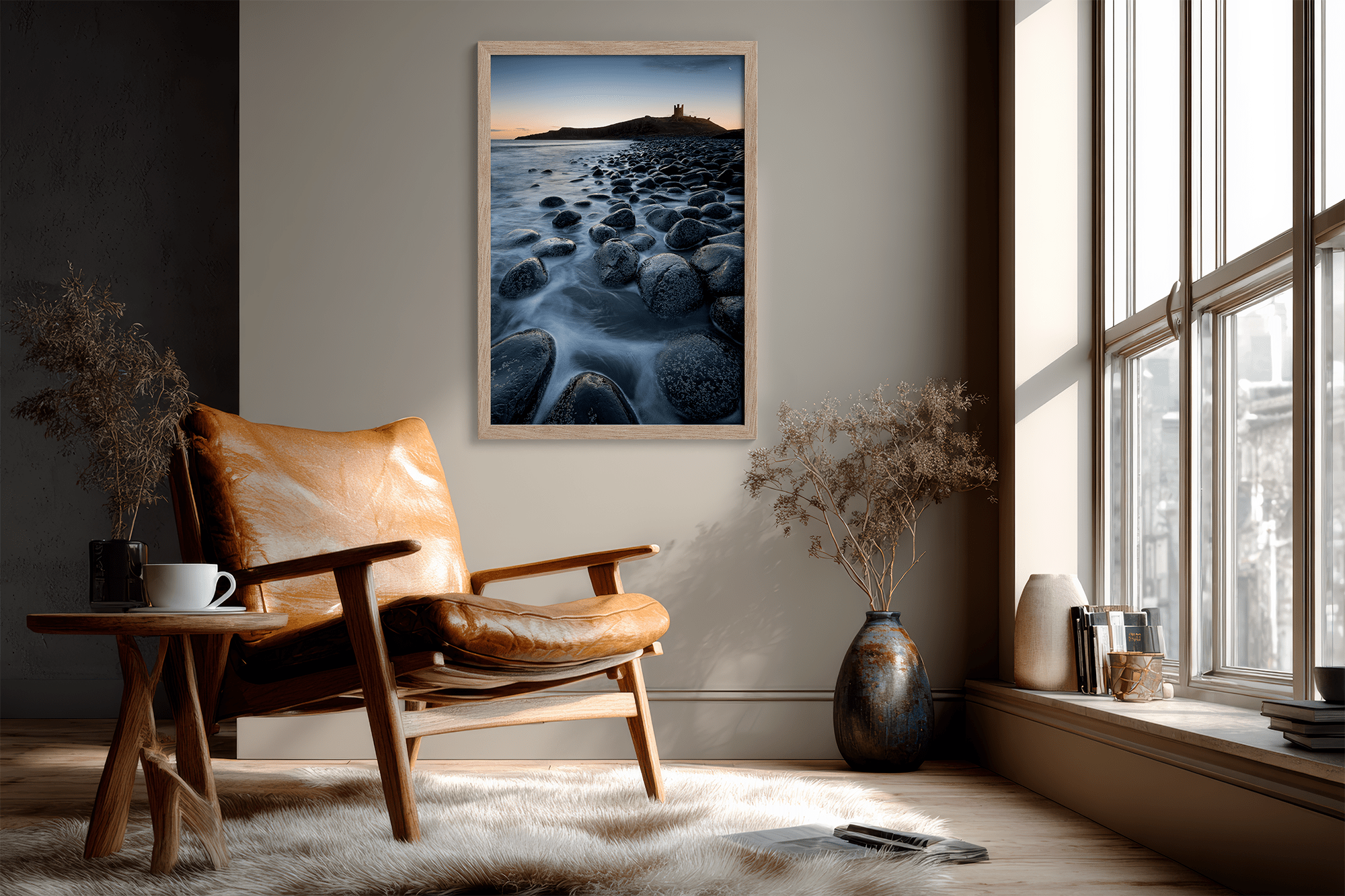 Printed on museum-grade fine art paper and elegantly framed in sustainably sourced wood, this piece blends tranquillity with timeless strength. Perfect for those who seek stillness, solitude, and the quiet majesty of place.