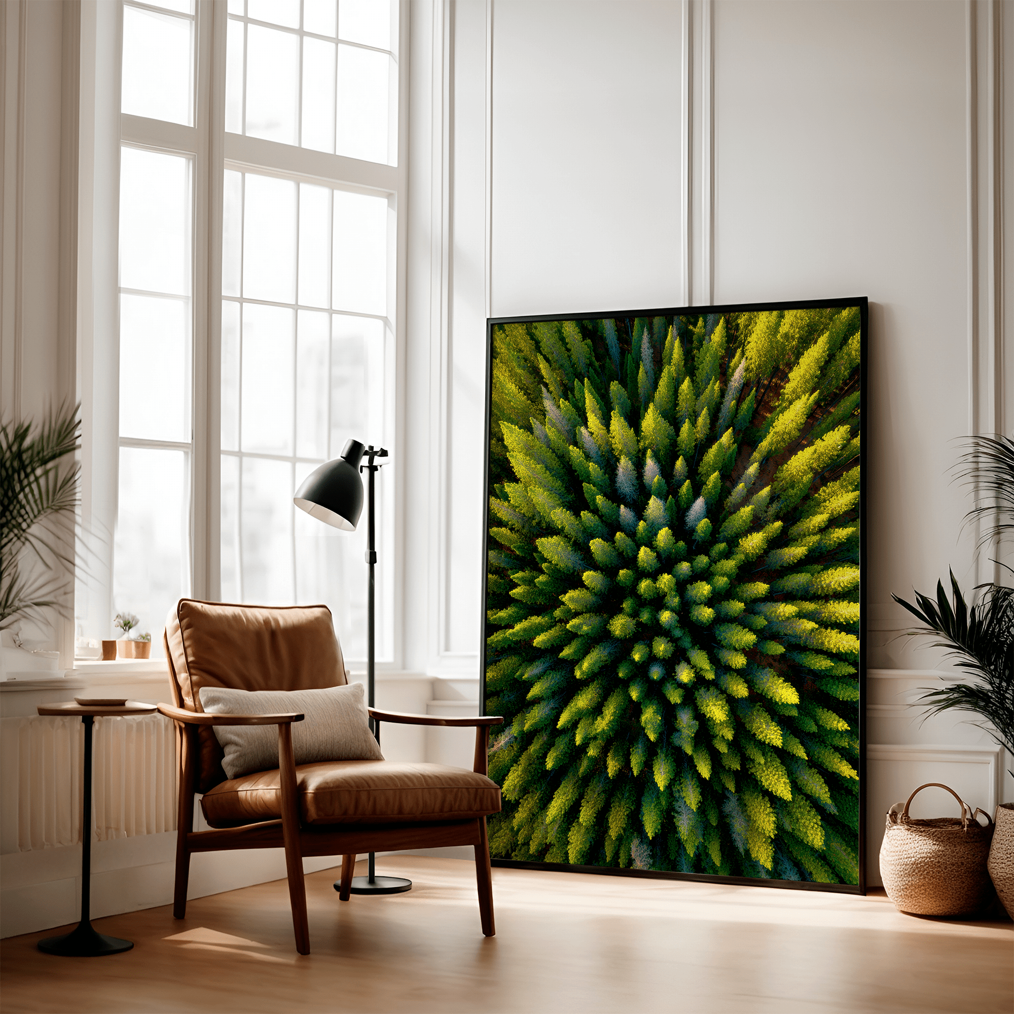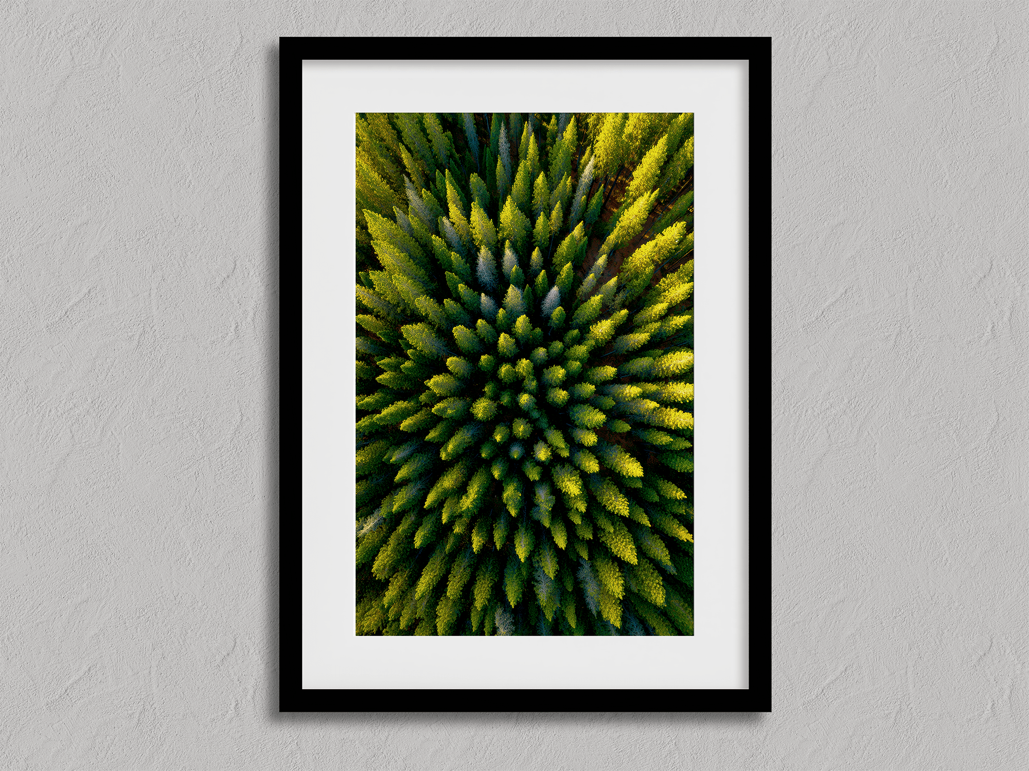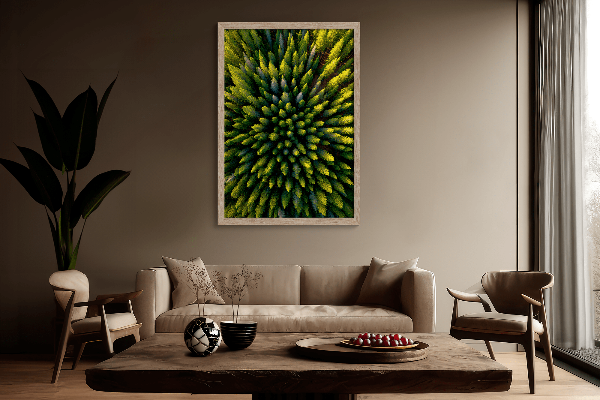Pine Radiance – Framed Aerial Forest Geometry Wall Art