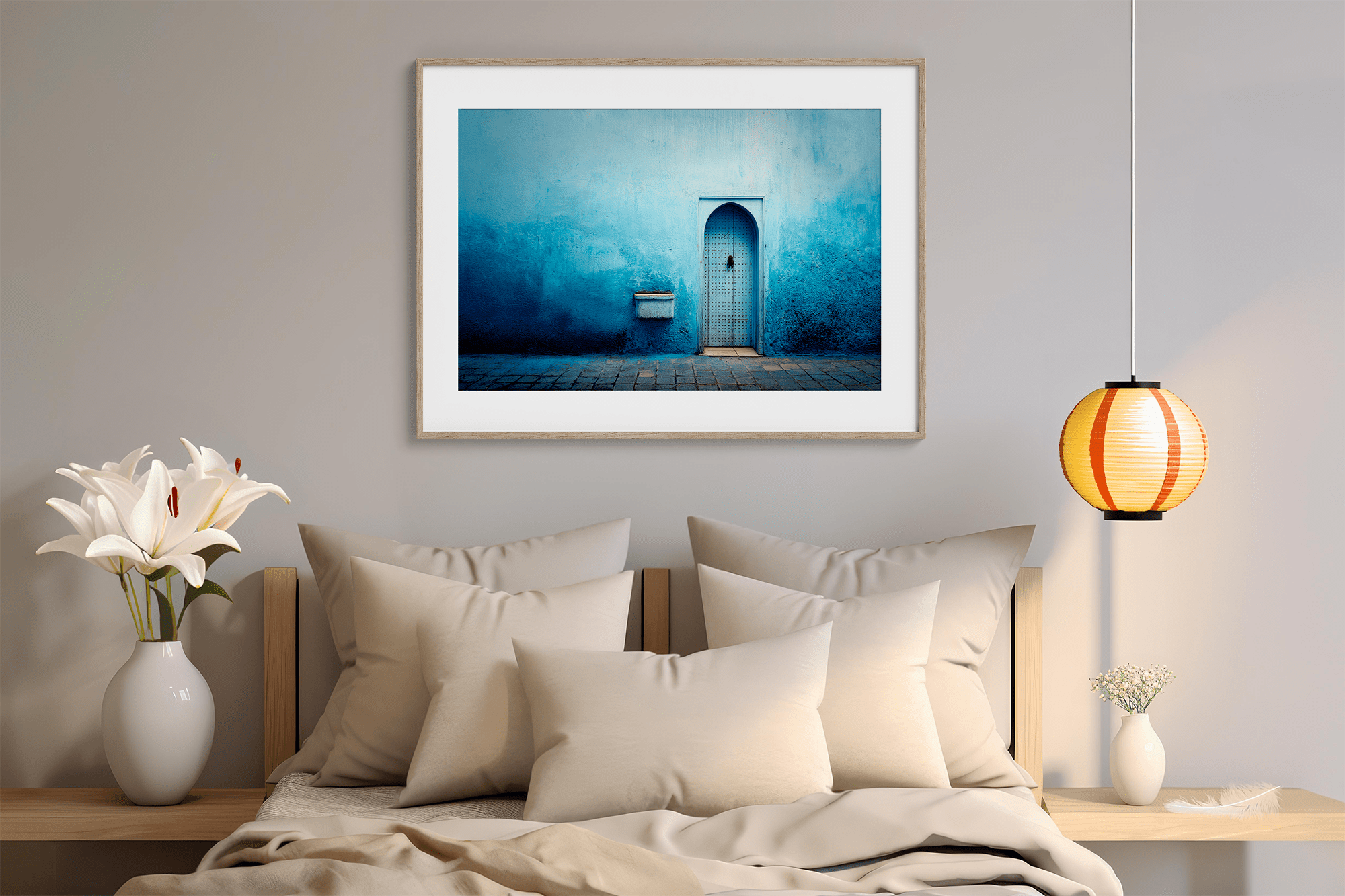 Printed on museum-grade archival paper and elegantly framed in sustainably sourced wood, this piece combines minimalist design with soulful atmosphere. Perfect for serene interiors, travel-inspired decor, or as a striking focal point on a gallery wall.