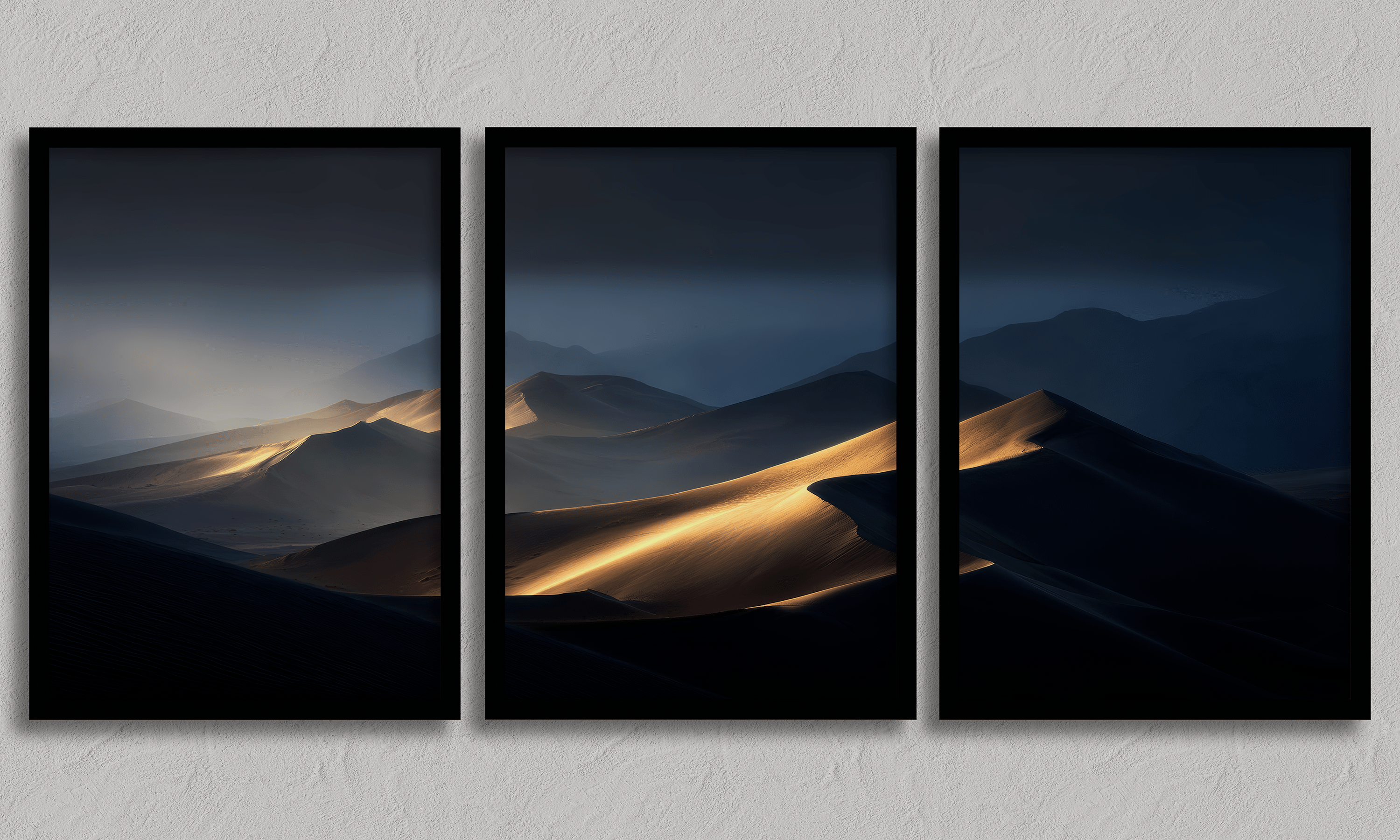 Embrace the enchanting beauty of Twilight Mirage, a breathtaking panoramic artwork capturing the serenity and mystery of the desert at dusk. Rolling dunes glow in warm ambers while dusky blues soften the horizon, creating a timeless interplay of light and shadow.
